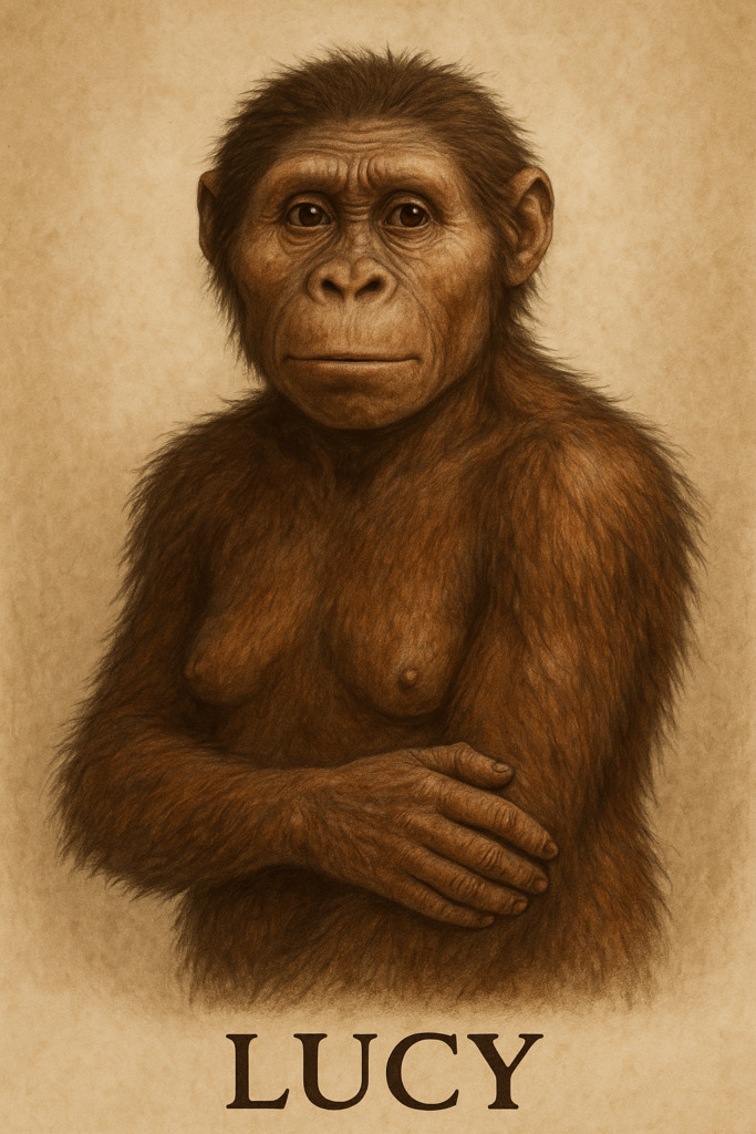 Il est apparu en Afrique ; de petite taille (environ 1,20m), avec un cerveau peu développé. L’exemple le plus célèbre est Lucy, surnom donné à un spécimen fossile de cette espèce, découvert en 1974 sur le site de Hadar, en Éthiopie, par une équipe de recherche internationale.
