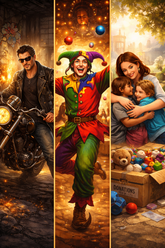 Le Farceur est l’archétype de la liberté vivante, de celui qui refuse la rigidité du monde. Il ne combat pas frontalement, il désarme par le rire, le jeu, l’absurde. Ce n’est pas juste faire le clown, c’est une posture existentielle.